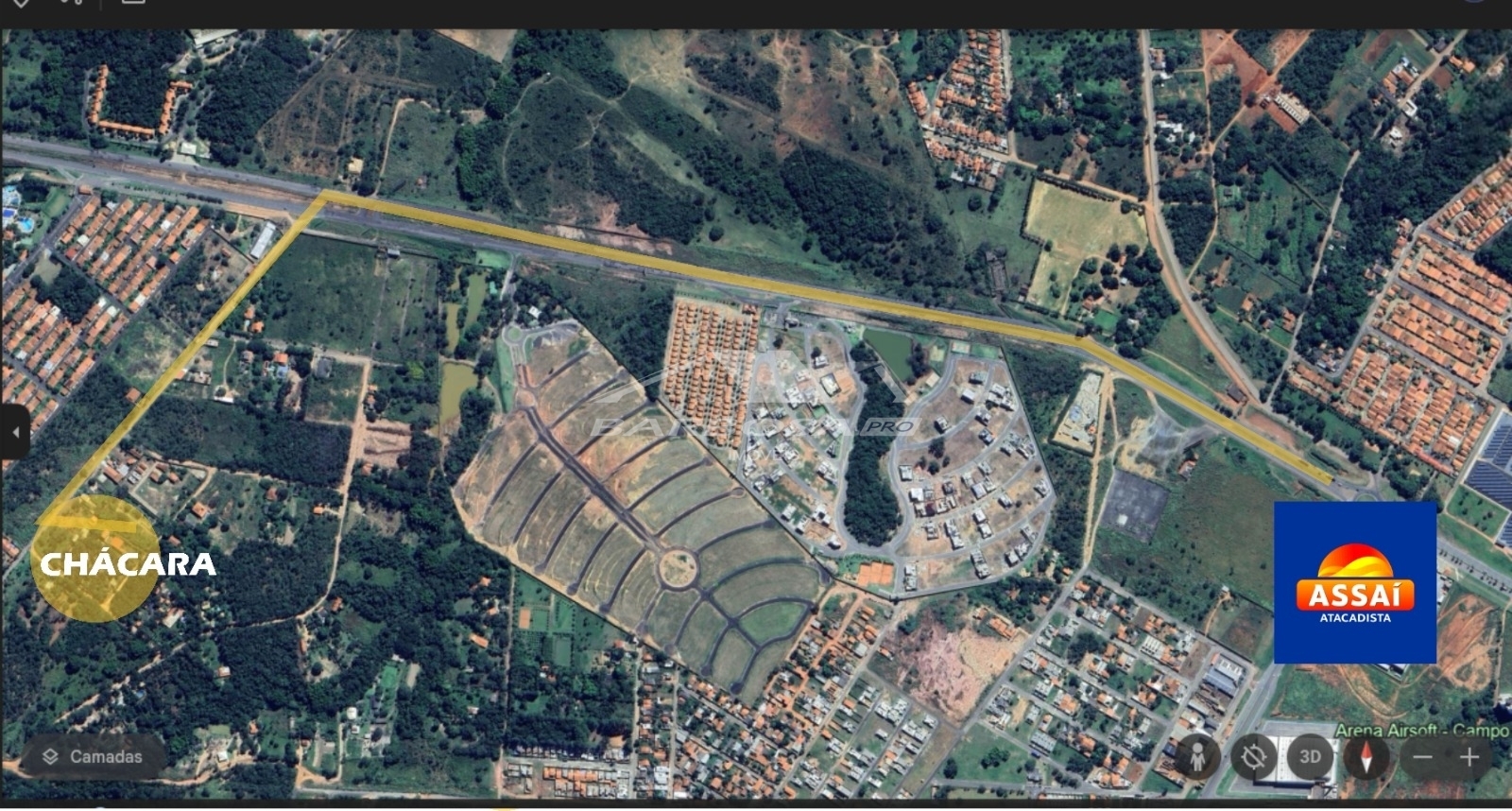 Chácara localizada a 2 km do Atacadão Assaí, perto do centro da cidade de Caldas Novas. Possui casa de 2 quartos, poço artesiano, galinheiro, pomar, totalmente murada, sistema de monitoramento por câmeras, cerca elétrica, outra construção ainda em fase de acabamento, acesso ao asfaltado apenas 50 metros, com 8 mil metros de área, excelente também para loteamento.