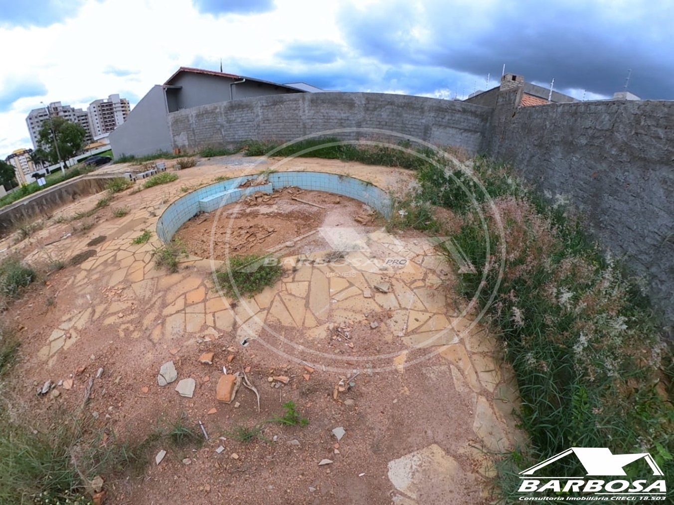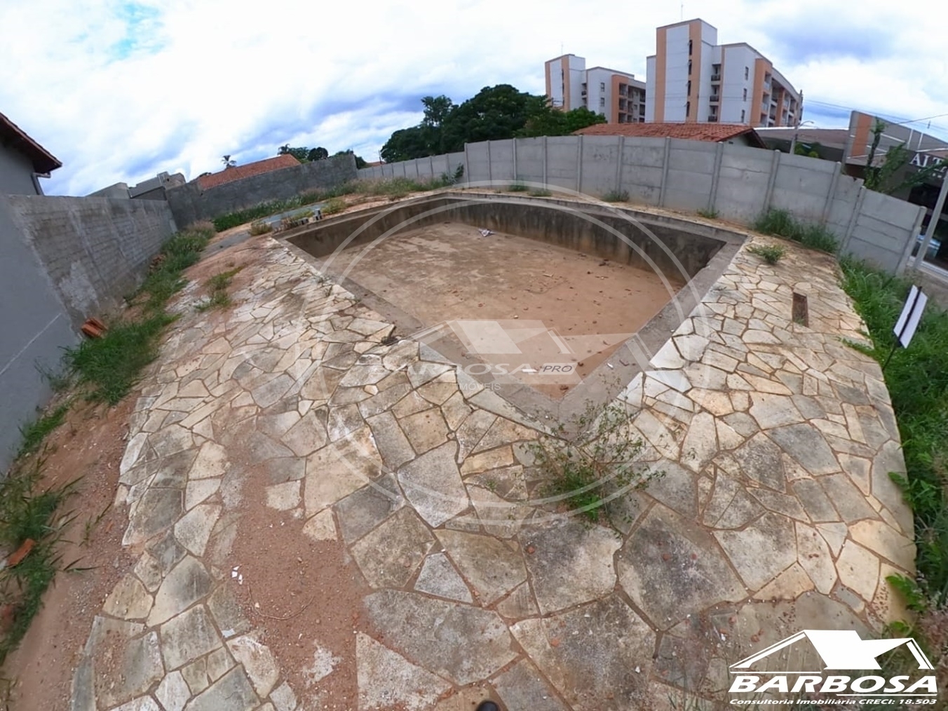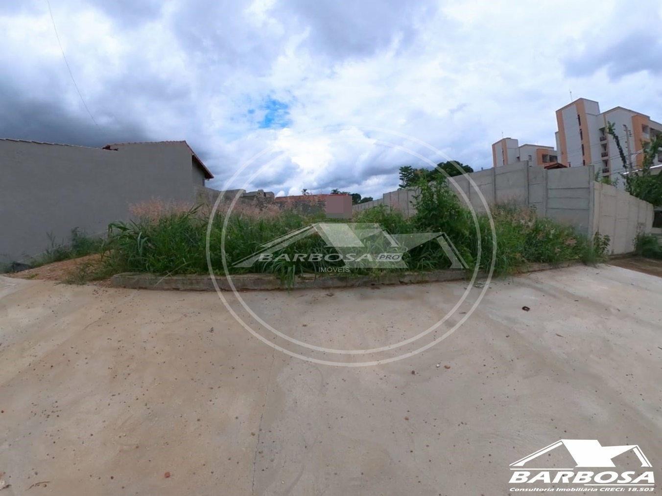 Lote com 420 metros, murado nos fundos e nas laterais.